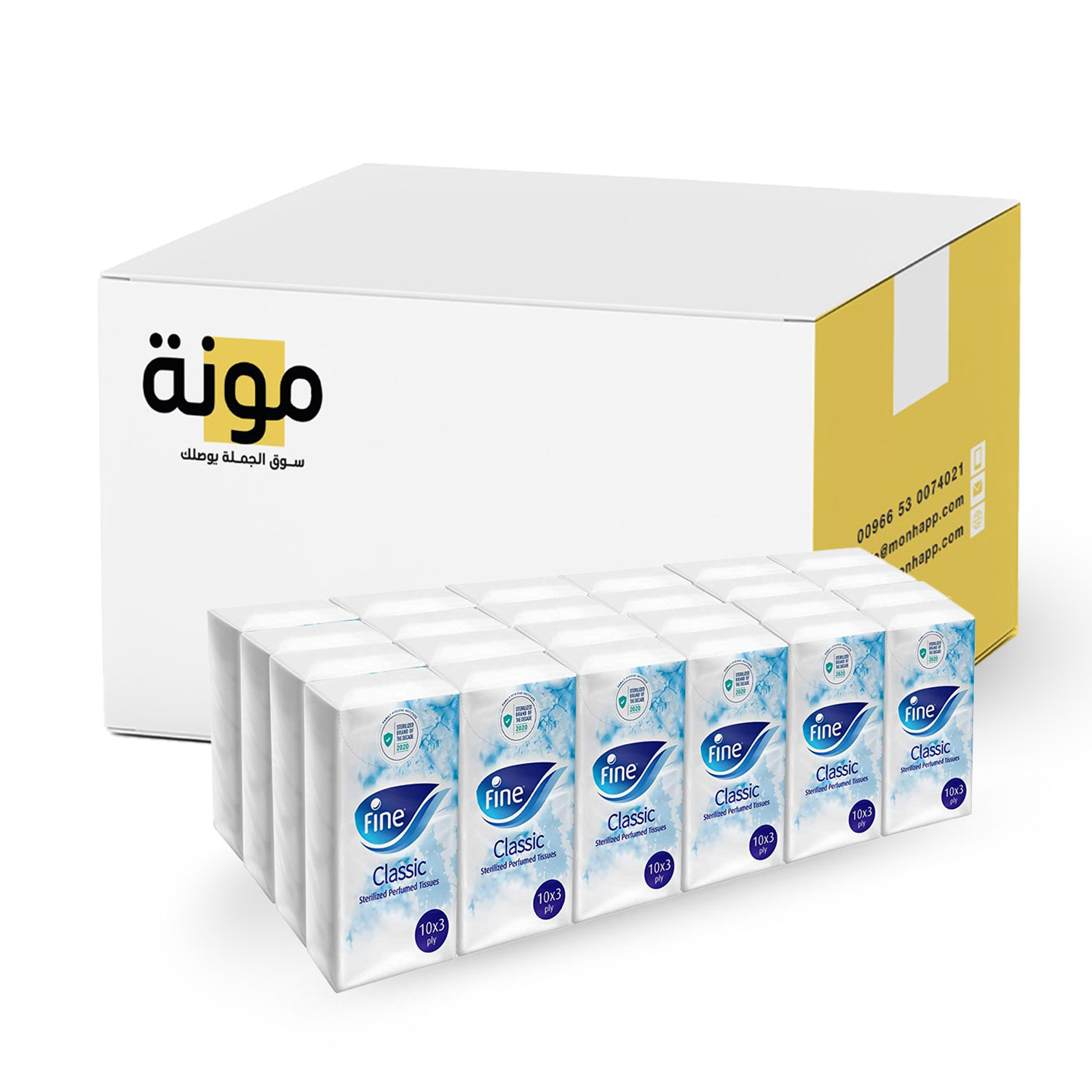 فاين مناديل جيب بيضاء كلاسيك ثلاث طبقات 10 باكيت × 12 علبة - كرتون